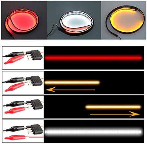 【Universal Fitment】: This flexible led brake light bar features 60 inches long, operated at DC 12V wide voltage, perfect for most Pickup Trucks, Trailers, Cars, SUV, RV, VAN, etc.If you encounter an unsuitable situation, you can try to go to the nearest car repair shop for decoding adaptation. Some models need to be decoded before they can be used normally.