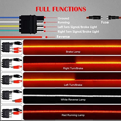 【Easy Installation】Well conductive standard 4-pin flat plug and self-adhesive tape, can be easily stuck on any smooth surface, simple installation without screws required with inline fuse for short circuit protection,the truck tailgate bar can be super durable.