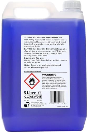 CONVENIENT ALL-SEASON CLEANING: CarPlan All Seasons Screenwash comes pre-mixed for year-round ease. Skip the hassle of dilution and pour it directly into your washer bottle.