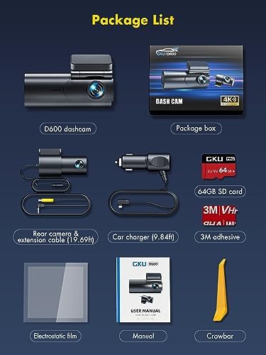 Dash Cam Front and Rear Camera, 4K/2.5K Full Dashcams for Cars with 64GB SD