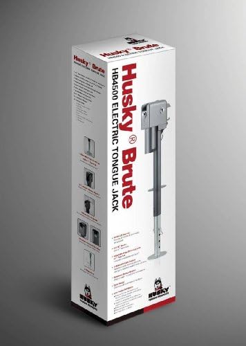 Powered trailer jack with 4,500 pound rating, 12-volt operation, hardened steel gears, and soldered connections