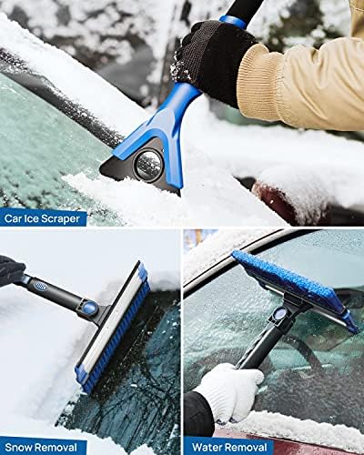 JOYTUTUS 47.7″ Extendable Snow Brush and Ice Scraper, 270° Pivoting Snow Scraper