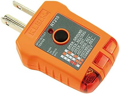 GFCI RECEPTACLE TESTER: Cat. No. RT210 detects common wiring issues in standard and GFCI receptacles, including open ground, reverse polarity, and more