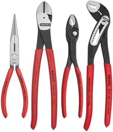 The perfect gift for the KNIPEX Tool enthusiast. Get four of the most popular KNIPEX Pliers for the price of three – includes a FREE TwinGrip Pliers! This set includes four of the most popular KNIPEX Pliers: Long Nose Pliers with Cutter, High Leverage Diagonal Cutter, TwinGrip Pliers, and Alligator Water Pump Pliers, one of each