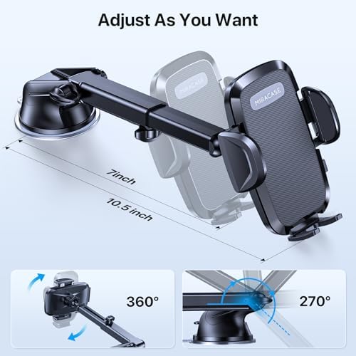 ✅ [TELESCOPIC ARM AND 360 DEGREE ROTATABLE] It is equipped with a long adjustable telescopic arm (from 5.3″-7.0″) and a 360 degree rotatable ball joint. You can adjust your phone to any place and angle you want so that it can help you find the best view for your driving trip. With this car phone mount, you can easily see your phone screen clearly and get a more convenient and safer driving experience.