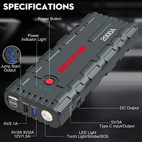 NEXPOW 2000A Peak Car Jump Starter with USB Quick Charge 3.0