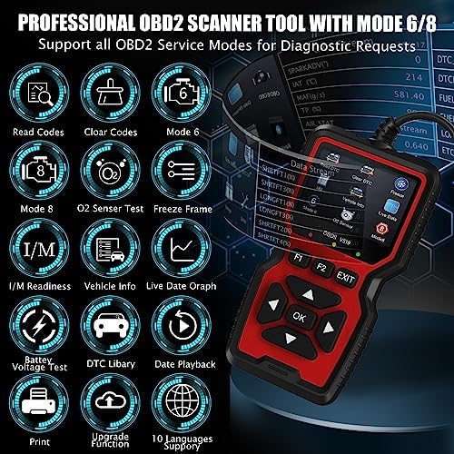 🚗【Professional OBD2 Scanner Diagnostic Tool with Powerful Functions】:OBD2 scanner code reader feature built-in 35901 OBD2 DTCs lookup library, As professional car scanner, the obd2 scanner diagnostic tool will help you to determine the cause of the engine light,📋read I/M readiness, 🔎Read & clear codes, 💡turn off engine light or MIL, ❄view freeze frame, 🚕retrieve vehicle VIN, 🔋battery voltage test, 📈live data stream,O2 sensor test, onboard monitoring mode, and perform component testing etc