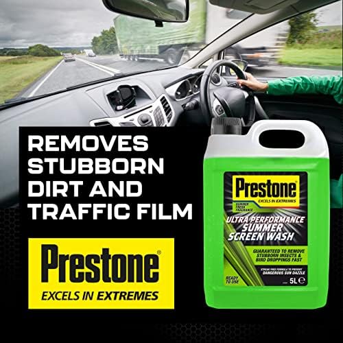 Prestone Intensive cleaning – Specially Formulated to Remove Summer Dirt & Debris and Prevent Dangerous Sun Dazzle, Quickly removing stubborn dirt and traffic film. Removes Bugs and Bird Droppings and is Safe for Automatic Windscreen Wipers and Headlight Washer Systems. Melts ice and can be used all year round.