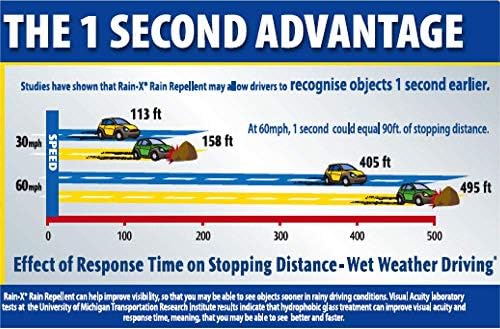 Rain‑X helps improve visibility by repelling rain, sleet and snow .