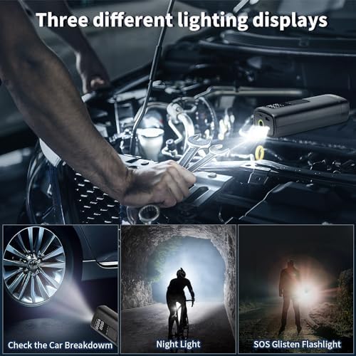 MORE THAN JUST TIRE INFLATORS: Bike tire pump are more than just tire inflators. It is also a versatile tool that combines a tire inflator, a power bank and a work light. It is ideal for outdoor, travel and rescue scenarios, offering charging and lighting support. Essential road trip companion.
