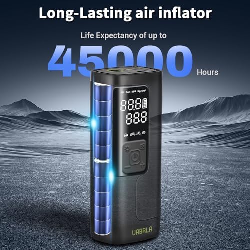 HIGH-PRECISION CHIPS:Upgraded with high-precision chips, our tire inflator improve tire pressure detection accuracy by ±0.5 PSI. The display displays real-time pressure values for easy observation and operation. Car tire inflator also automatically shuts down when a preset value is reached, preventing overcharging and remembering the last preset value to avoid repeated operation.