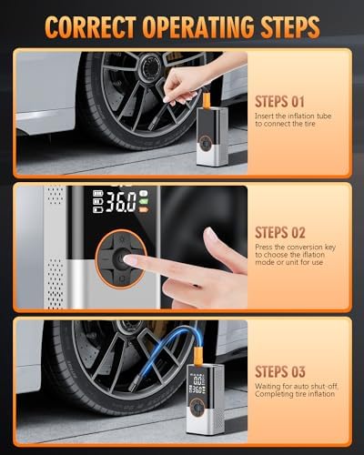 【Quick and Efficient Inflating】KUXISA air compressor is equipped with a high-performance chip, providing high-speed airflow. Tire inflator can quickly inflate vehicle tires within a few minutes, with precision accuracy up to 150 PSI. Its battery capacity is 20000 mAh, is a portable air pump for cars, bikes & motorcycle tires, balls, making daily life and travel more convenient.