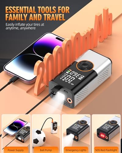 Tire Inflator Portable Air Compressor, 20000mAh & 150PSI Portable Air Pump
